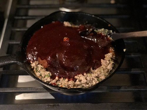 5.다진 돼지고기를 넣고 소금 &후추 간하며 볶아 준다.