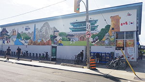 PAT한국식품 벽면에 그려 지난 13일 PAT한국식품 블루어점에서 공개된 벽화. 청계천과 광화문 등 한국 관광명소가 담겼다. 한국관광공사 토론토지사와 코리아타운BIA는 벽화 제막식을 지난 13일(금) PAT한국식품 블루어점에서 가졌다. 정태인 토론토총영사, 박형관 한국관광공사 지사장, 이진수 한인회장 등 100여 명이 참석해 사물놀이 등 공연을 즐기며 제막식을 지켜봤다. 커튼으로 가려진 벽화가 공개된 후 화가들이 색깔이 입혀지지 않은 부분을 페인트로 칠하면서 그림을 완성했다. 벽화를 담당한 […]